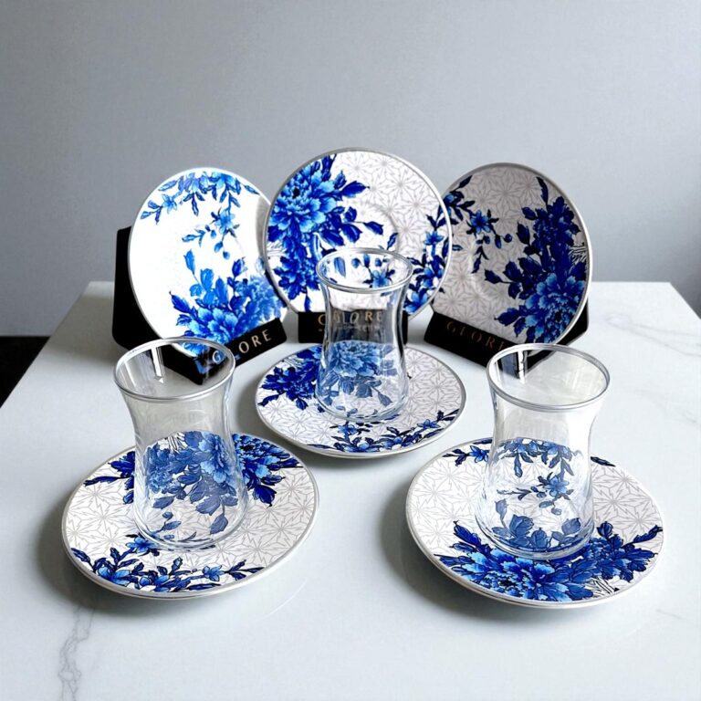 Türk Motifli 6’lı Mavi Porselen Tabaklı Çay Bardağı Takımı – Sudedi Home