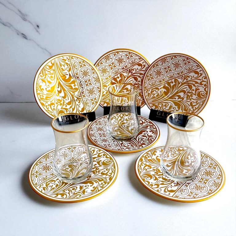 Altın Varaklı ve Desenli 6’lı Porselen Tabaklı Çay Bardağı Takımı – Sudedi Home