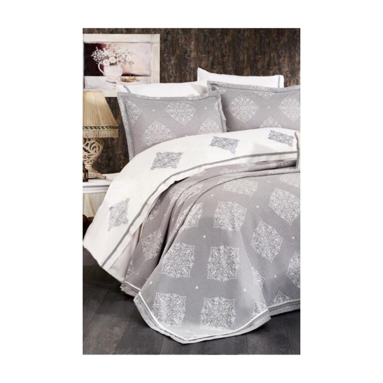 Elart Çeyiz Seti 53 Parça %100 Organik Pamuk Bahar Modeli 270×260 cm Gümüş Renk Desenli