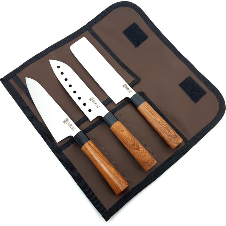SürLaz Japans Şef Bıçak Seti İsme Özel 3’Lü Santaku Nakiri Şef Bıçağı Çantalı Bıçak Seti