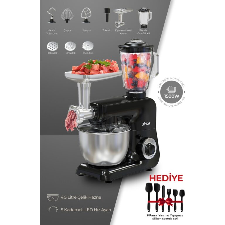 Stilevs Chef X Star 1500 Watt Stand Mikser 5 Litre Paslanmaz Çelik Kase Siyah Modern Tasarım