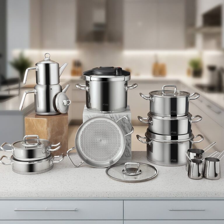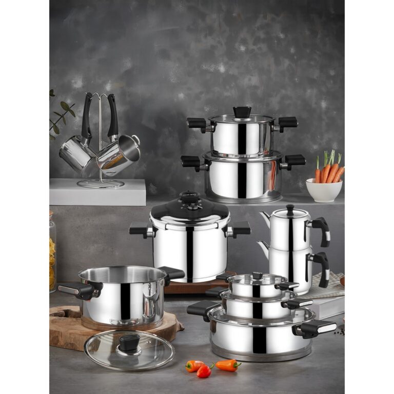 Aryıldız 22 Parça Paslanmaz Çelik Derin Tencere Seti – Cam Kapaklı, Ergonomik Saplı, Kolay Temizlik, 20-24 cm