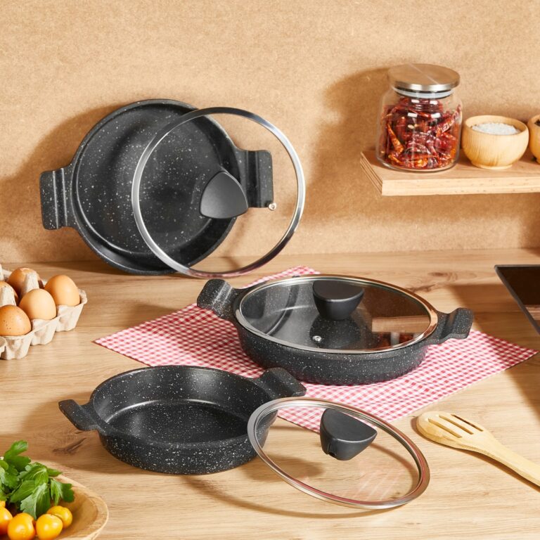 Amboss Astral Cam Kapaklı Granit 6 Parça Döküm Sahan (Omlet) Seti