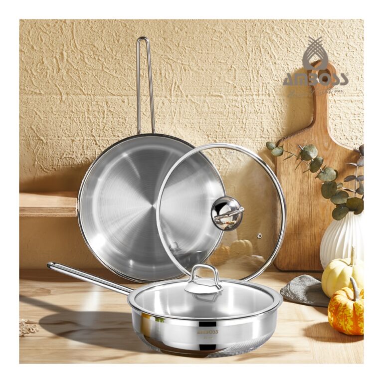 Amboss Lusigram 3 Parça Paslanmaz Çelik Indüksiyon Tabanlı Kapaksız Tava Seti