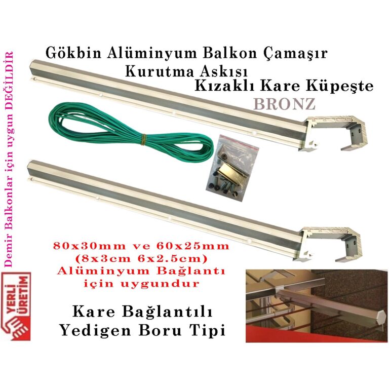 Gökbin Alüminyum Balkon Çamaşır Kurutmalık Askısı Kare Küpeşte Çamaşırlık Kızaklı Bronz