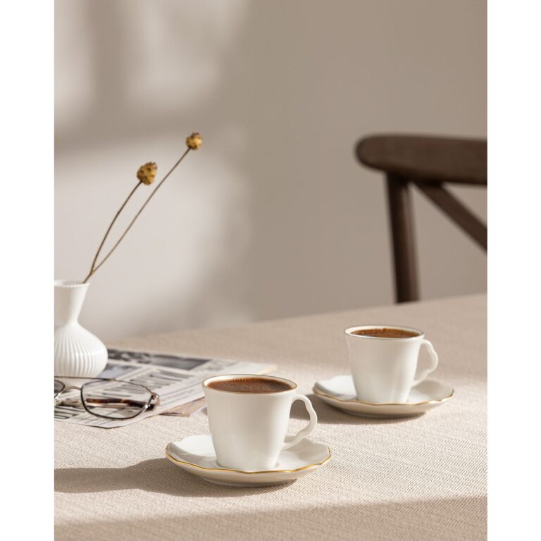 Madame Coco Vela 6 Kişilik 12 Parça Kahve Fincan Takımı – Beyaz/gold – 90 ml