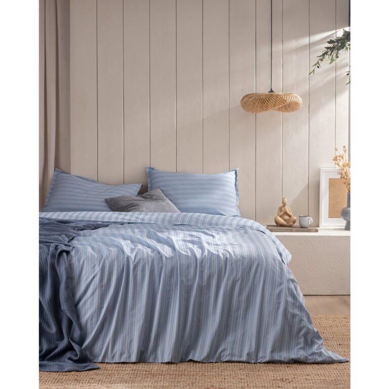 Madame Coco Melicia Tek Kişilik Pamuklu Çizgili Saten Nevresim Takımı – Mavi