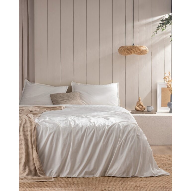 Madame Coco Melicia Tek Kişilik Pamuklu Çizgili Saten Nevresim Takımı – Ekru