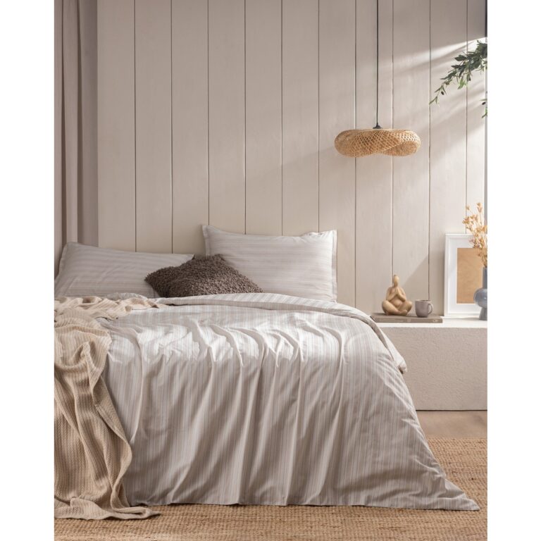 Madame Coco Melicia Tek Kişilik Pamuklu Çizgili Saten Nevresim Takımı – Bej
