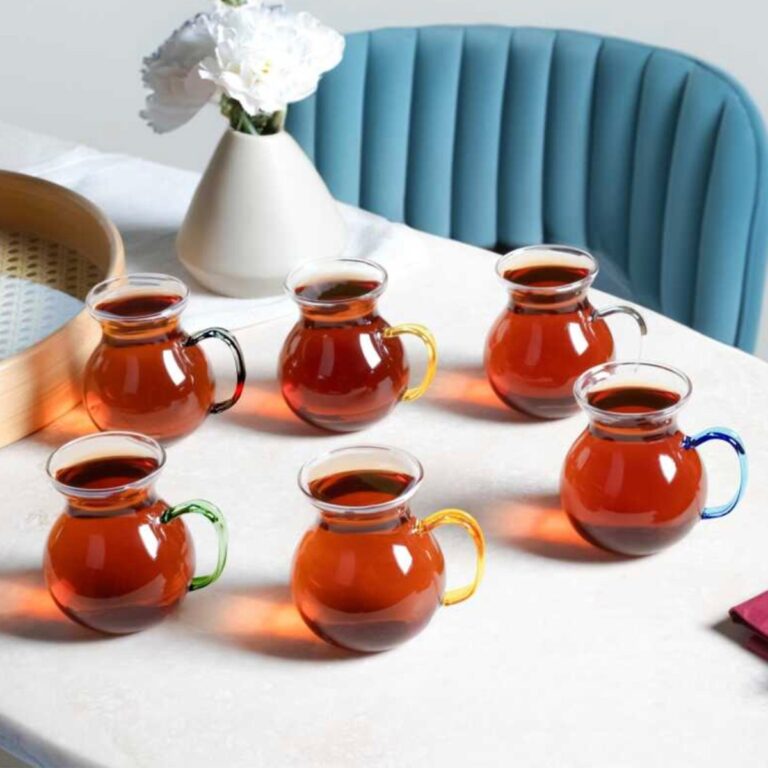 Morponi 6’lı Borosilikat Cam Tombul Kulplu Çay Bardağı 180 ml