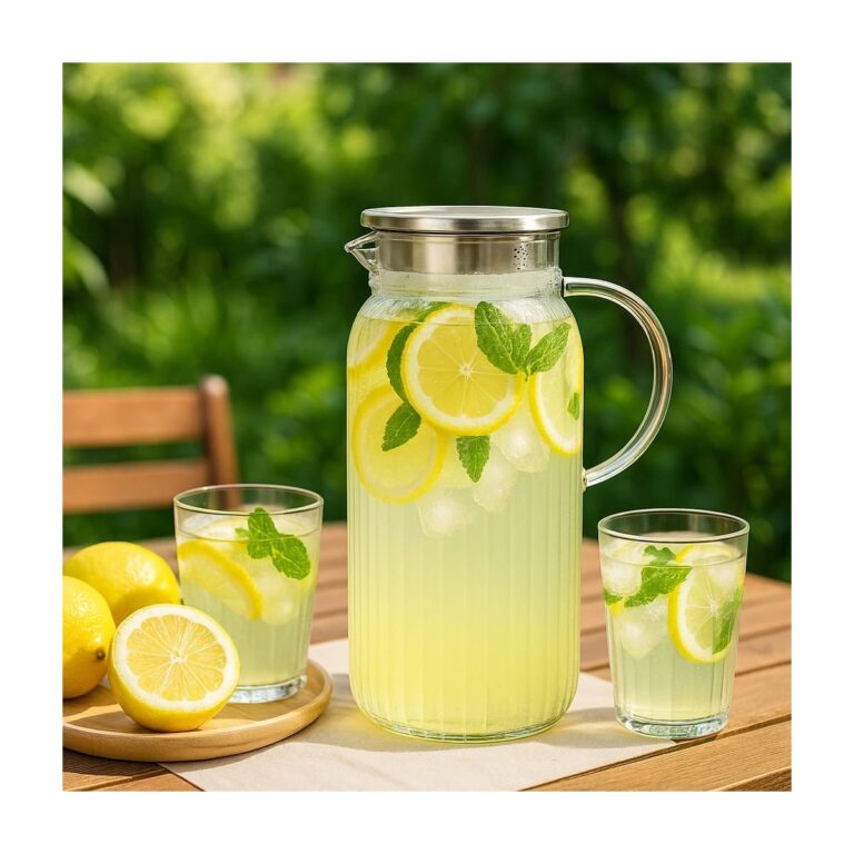 Meturas 1800ML Dayanıklı Vakumlu Cam Sürahi Metal Süzgeç ve Kapaklı
