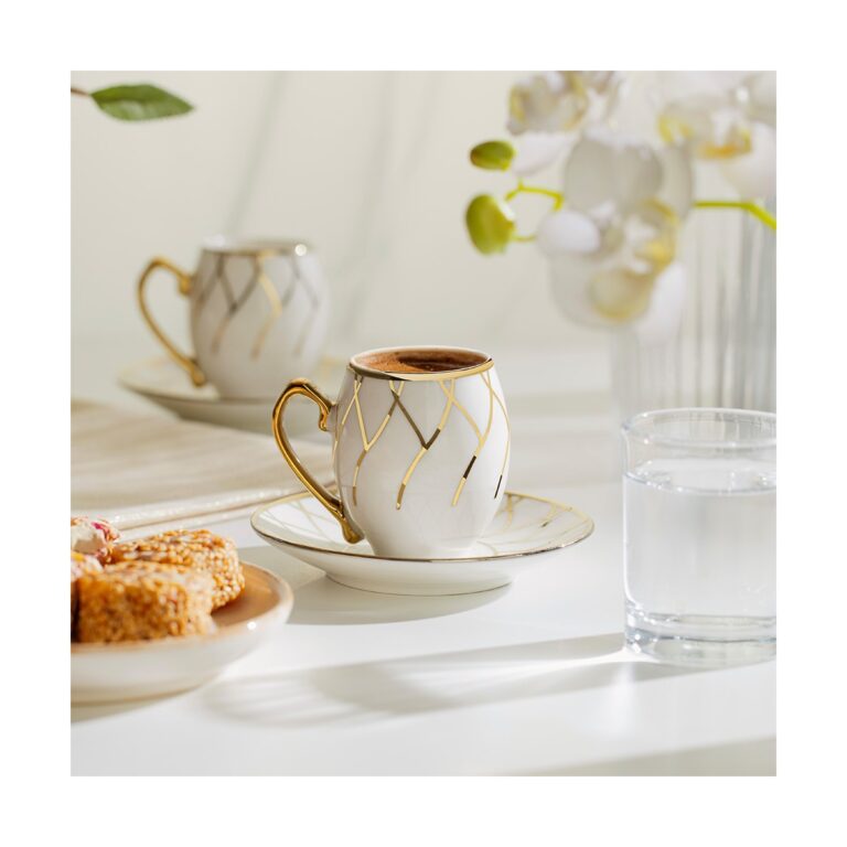 Nehir Dora 6 Kişilik 12 Parça Porselen Kahve Fincan Takımı