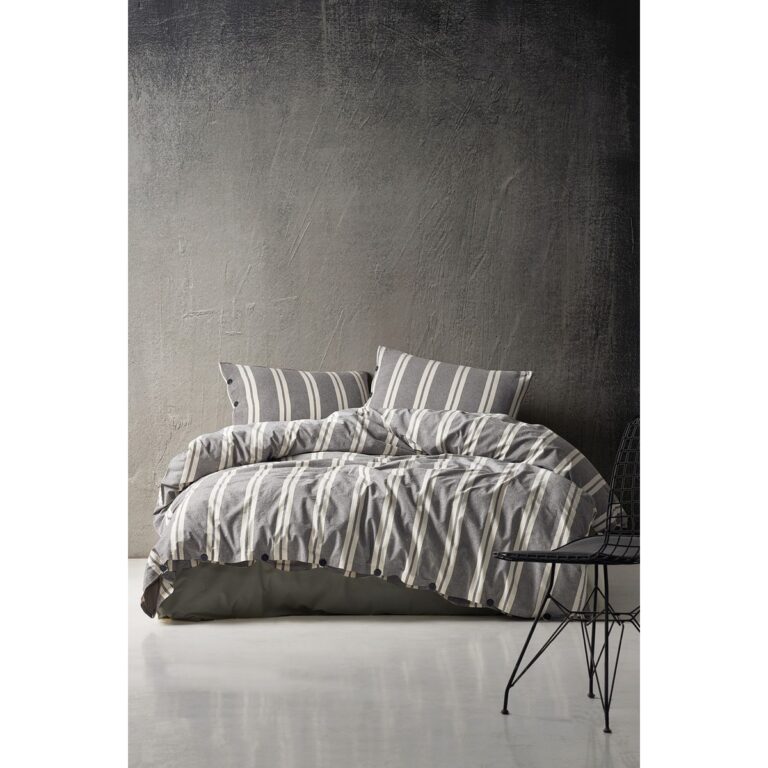 Berolige Heritage 100% Pamuklu Çift Kişilik Yıkamalı Iplik Boya Çizgili Nevresim Takımı Antrasit