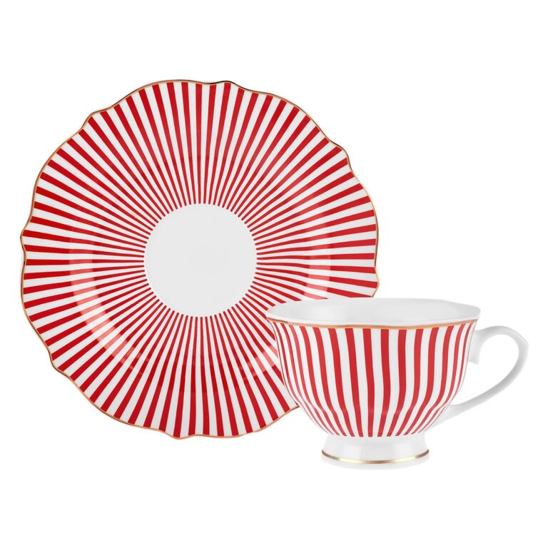 Karaca New Romantic Ince Çizgili Çay Fincanı 220 ml Kırmızı
