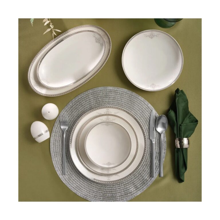 Kütahya Porselen Bone Olympos 54 Parça 12 Kişilik Krem Yemek Takımı – Zarif ve Modern Tasarımlı Kaliteli Porselen