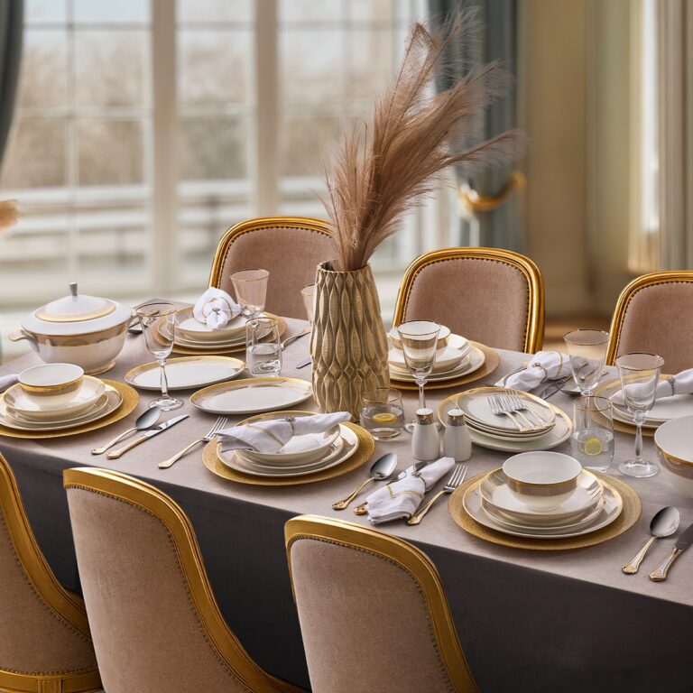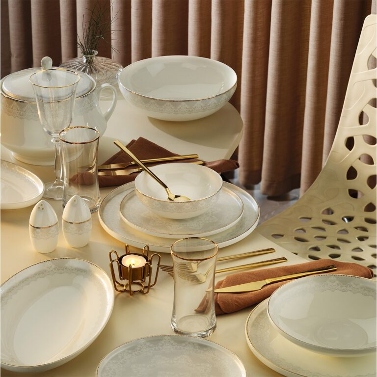 Acar Aveline 12 Kişilik 60 Parça Porselen Yemek Takımı – Gold