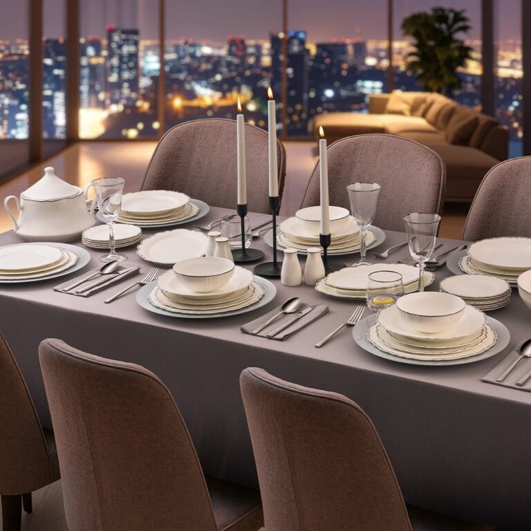Evaliza Lace Platin 85 Parça 12 Kişilik Yemek Takımı