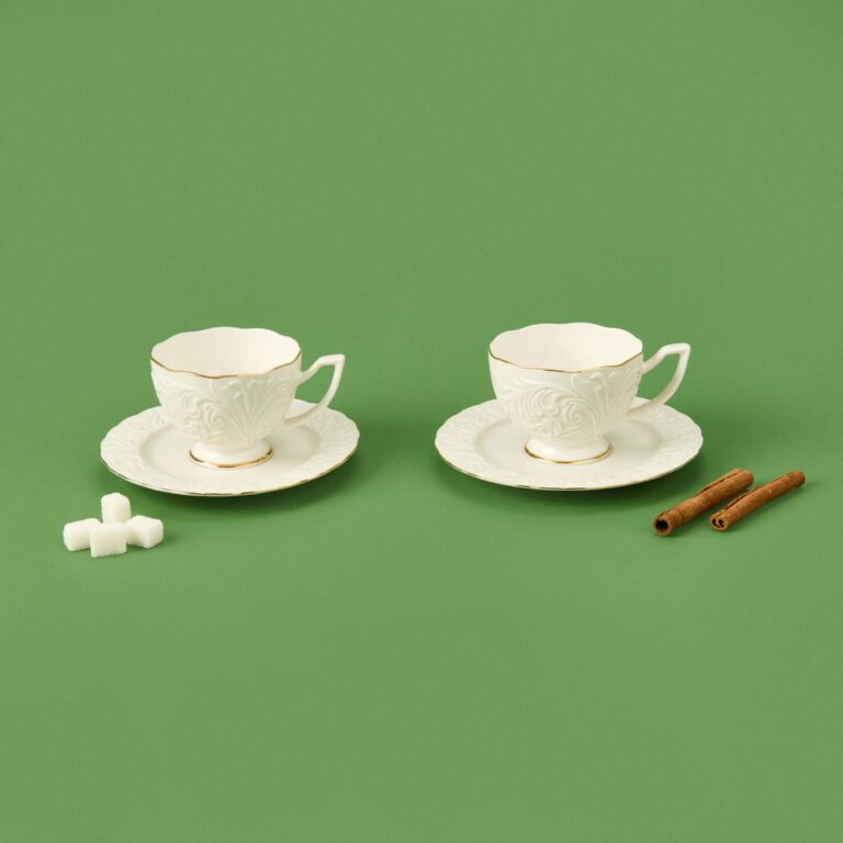 İpek Bone Rosen Porselen Altın Yaldızlı 2’li Çay Seti – Beyaz