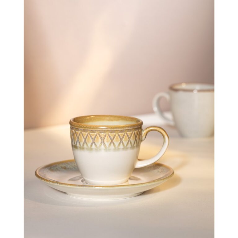 Madame Coco Antique 6’lı Kahve Fincan Seti Krem Toprak Porselen Zarif Tasarım 6 Parça