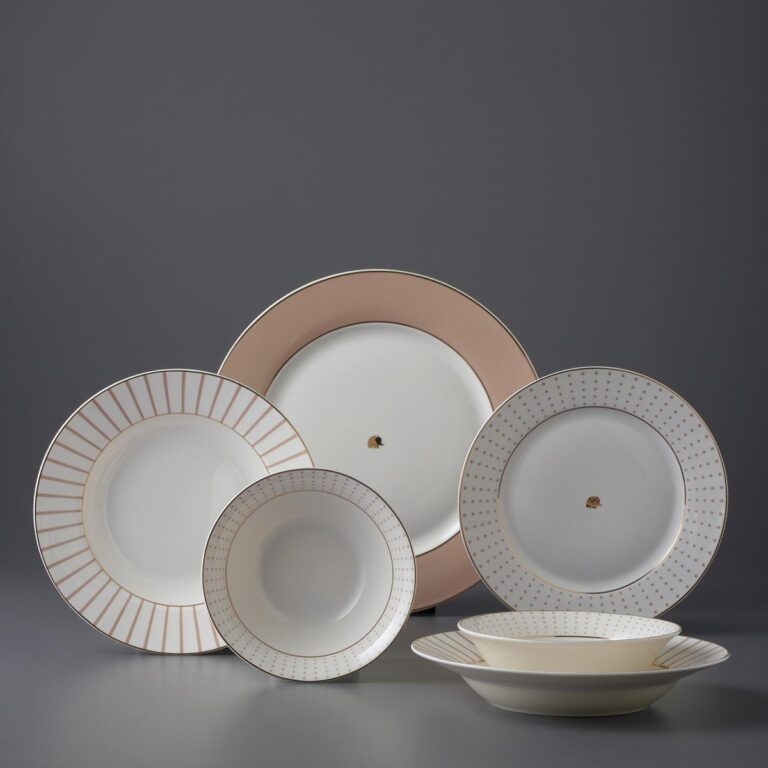 Jumbo Navy 24 Parça 6 Kişilik Bej Renk Desenli Yemek Takımı Bone Malzemeden Üretildi