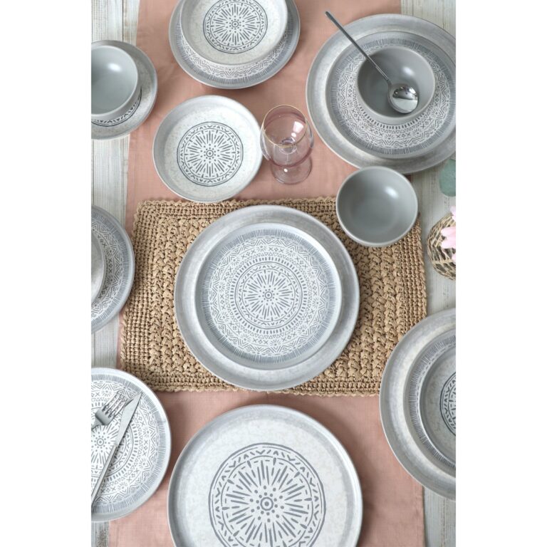 Keramika Stone Nordic24 Parça 6 Kişilik Gri Desenli Mat Stoneware Yemek Takımı