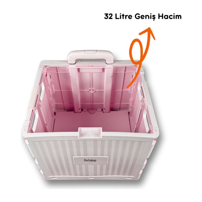 Portakap 4 Tekerlekli, 55 Litre Pembe Katlanır Alışveriş Arabası – Hareketli Tutacaklı, piknik Masalı