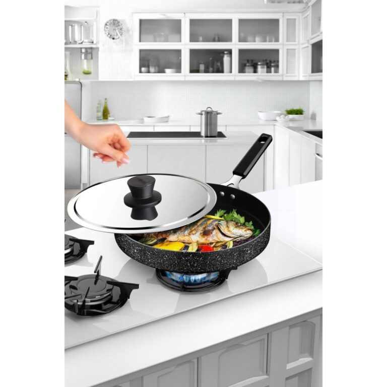 Lavonni 32 cm Kapaklı Balık Tava – Siyah