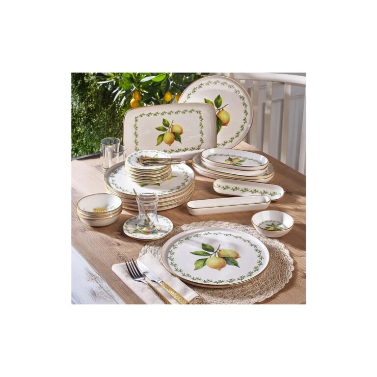 Fecra Lemone 35 Parça 6 Kişilik Kahvaltı Takımı Şık Beyaz Renk Gold Fileli Tasarım