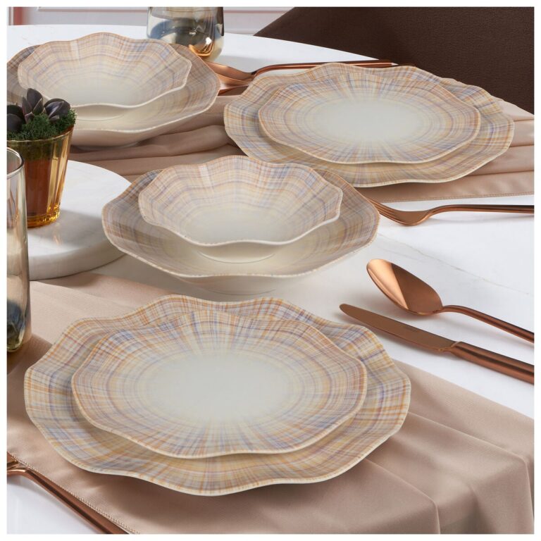 Karaca Square Bone Autumn 60 Parça Beyaz Kare Desenli Porselen Yemek Takımı – 12 Kişilik Şık Tasarım