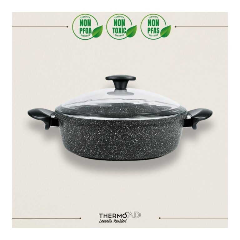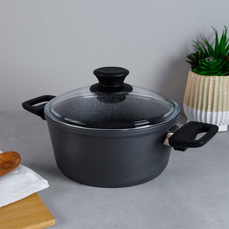 Lavonni 22 Cm Basık Silikon Kenarlı Cam Kapak Granit Tencere – Kahverengi