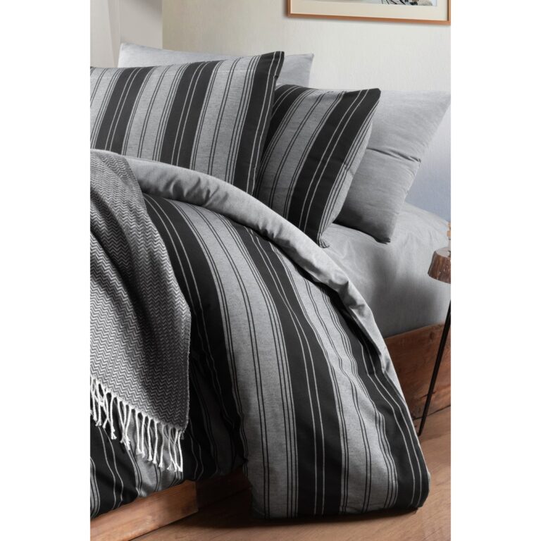My Story Lastikli Çarşaflı Çift Kişilik Nevresim Takımı Çizgili Siyah