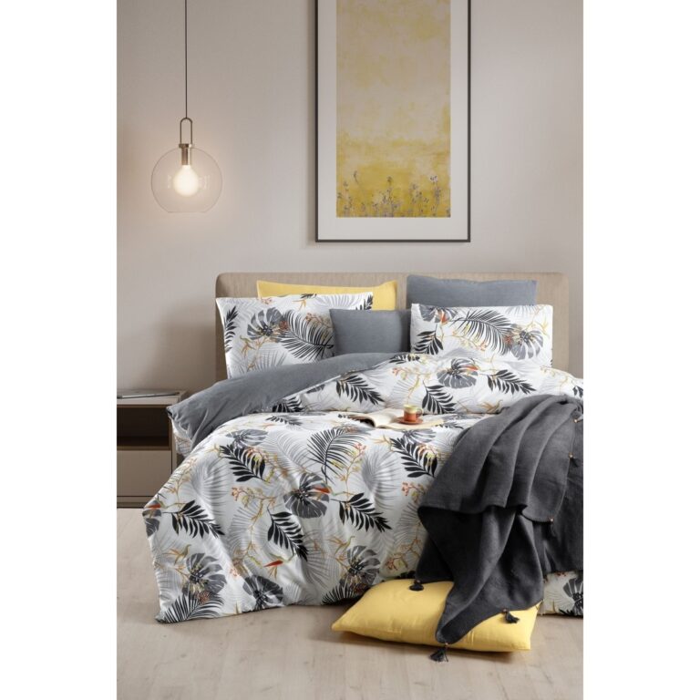 My Story Lastikli Çarşaflı Çift Kişilik Nevresim Takımı Monstera Gri