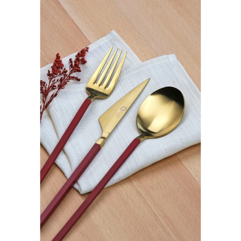Glore Lizbon 6 Kişilik Çatal Kaşık Bıçak Takımı Gold-Kırmızı