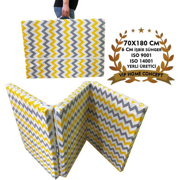 Nelson Katlanır Yer Yatağı ve Tek Kişilik Sünger Katlanır Minder Yatak 70 x 180 cm 6 cm – Sarı Gri Zikzak
