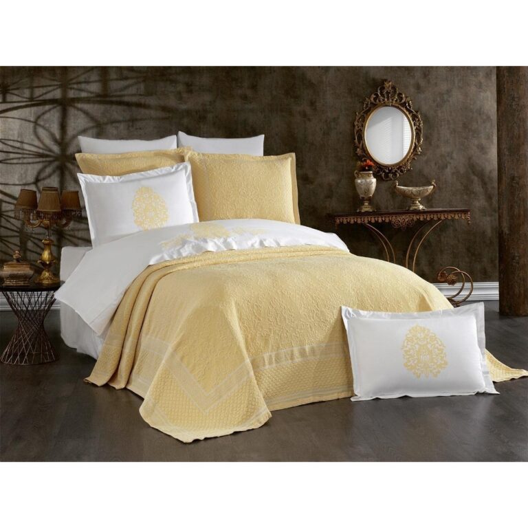 Finezza Pandora Jakar Nakışlı Pamuk Nevresimli Sarı Gelin Seti 9 Parça – 1201