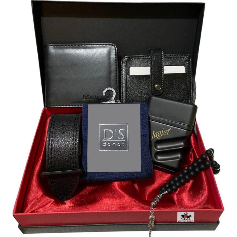 D’S Damat Erkek Bohçası Düz Derili Kutulu Cüzdan Kemer Çorap Kartlık Parfüm Seti