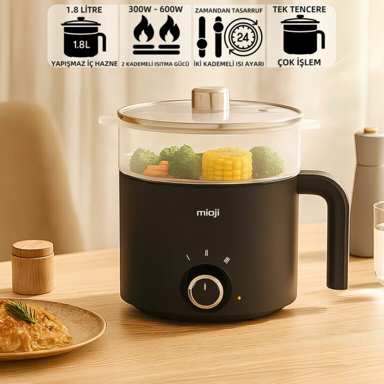 Mioji Mio EP35 600W 1.8L Çok Fonksiyonlu Buharlı ve Yağda Pişirme Özellikli Elektrikli Pişirici – Siyah
