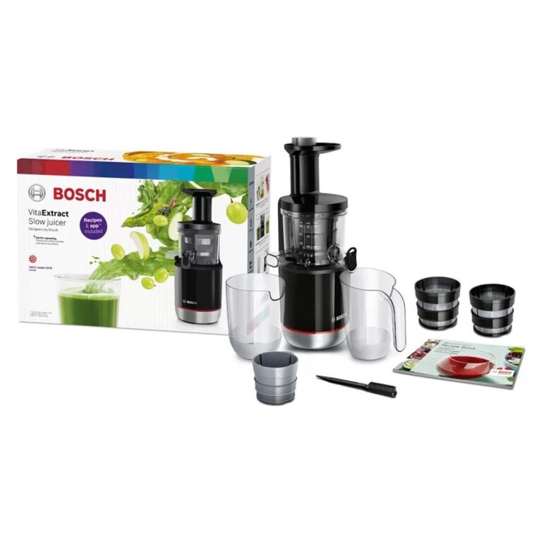 Bosch MESM731M VitaExtract Yavaş Sıkım Katı Meyve Sıkacağı, VitaExtract, 150 W, Siyah, Fırçalanmış paslanmaz çelik