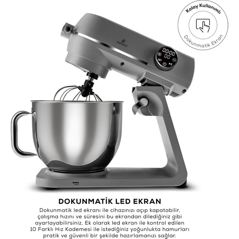 Karaca Multichef Artisan Digital Ekran 7 Litre Döküm Stand Mikser Antrasit 1800W