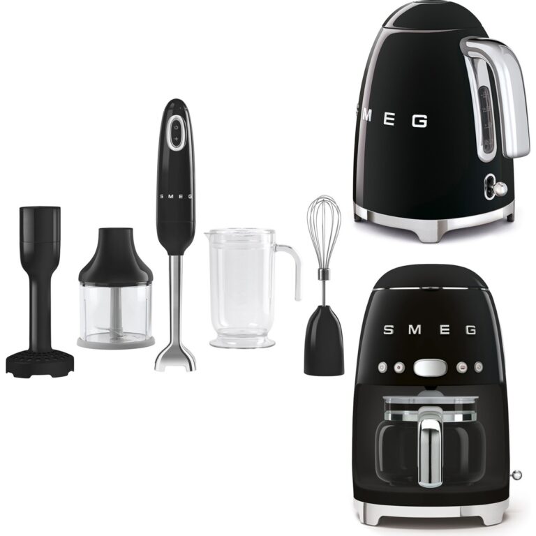 Smeg Siyah Kettle-Filtre Kahve Makinesi ve El Blender Seti