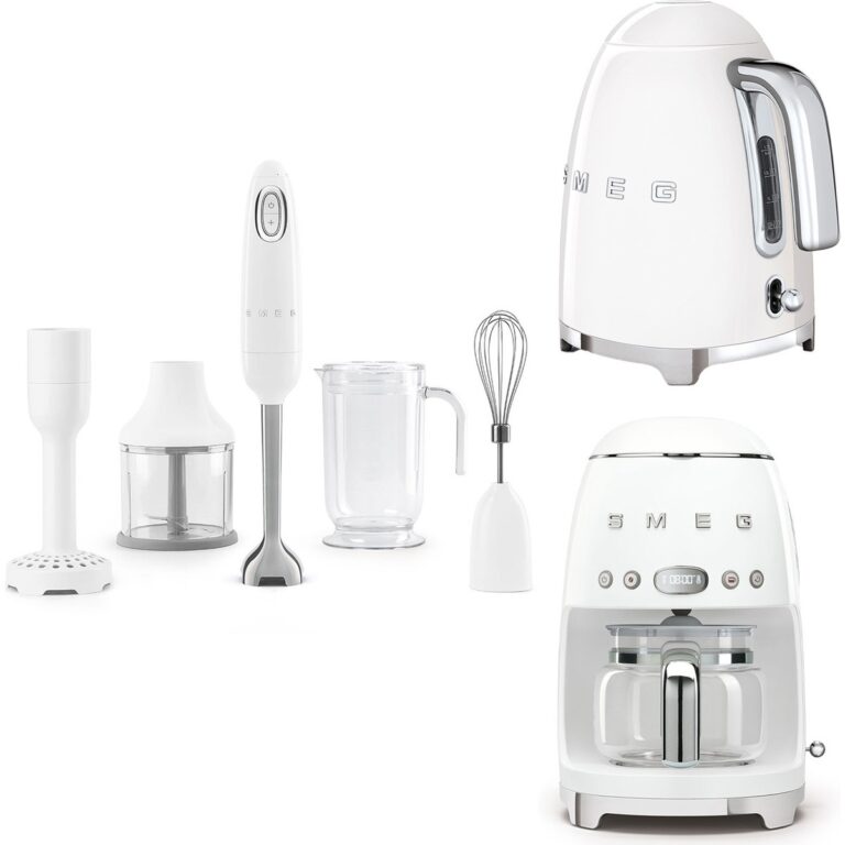 Smeg Beyaz Kettle-Filtre Kahve Makinesi ve El Blender Seti