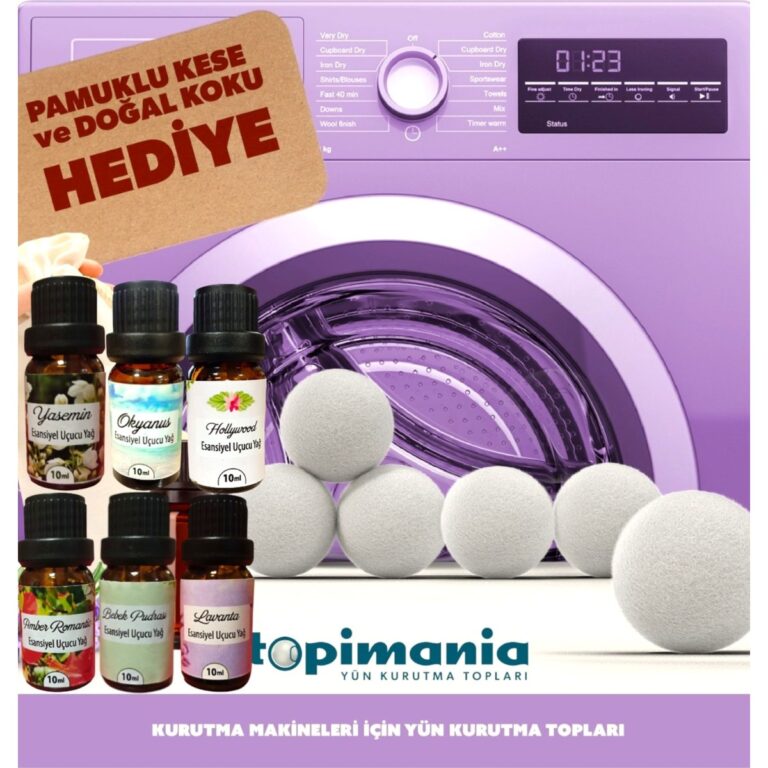 Topimania 6 Adet Xxl Doğal Yerli Üretim Çamaşır Yün Kurutma Topu 6 Adet 10 ml Esans – Kurutma Makinesi Için