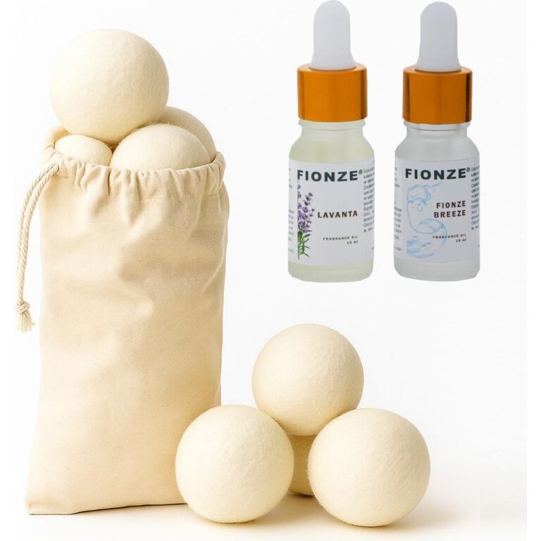 Fionze Çamaşır Yün Kurutma Topu ve Koku Seti – Kurutma Makinesi Için – 4 Adet Doğal Top + 2 Adet Koku