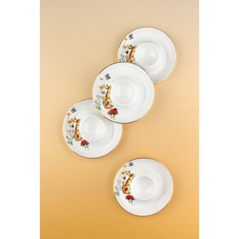 Bursa Porselen Dekor Tavşan 4 Parça Altın Yaldızlı Porselen Yumurtalık