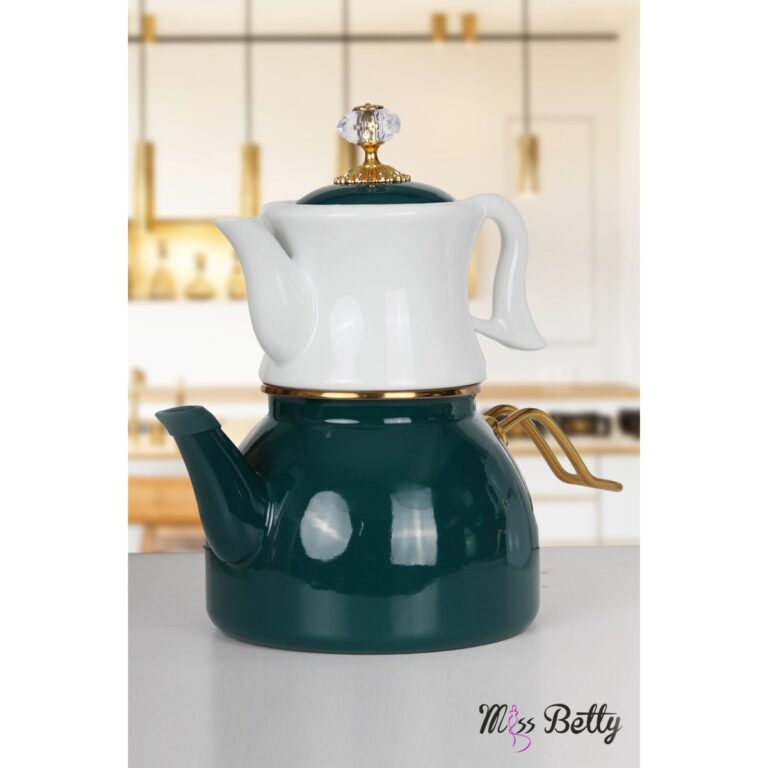 Miss Betty Yeşil Porselen Demlikli Emaye Çaydanlık Takımı