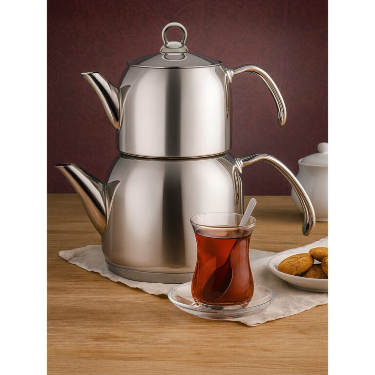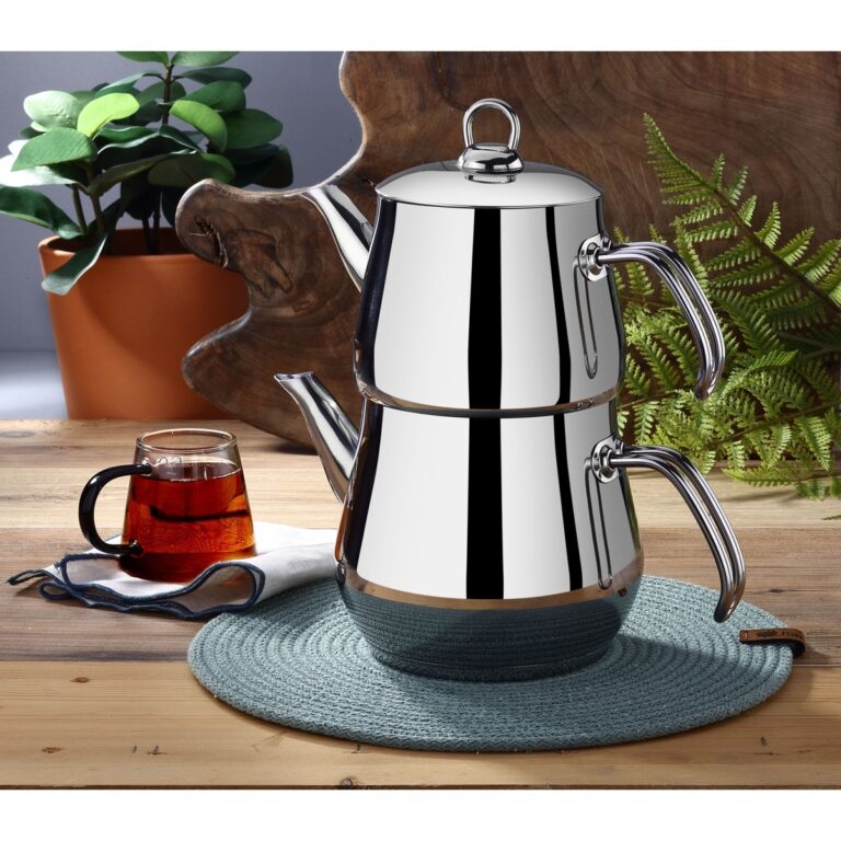 YUNUSOĞLU HOME Aletta Büyük Boy Çelik Çaydanlık Metal Kulp Aile Boy (Kendinden Süzgeçli) Çelik