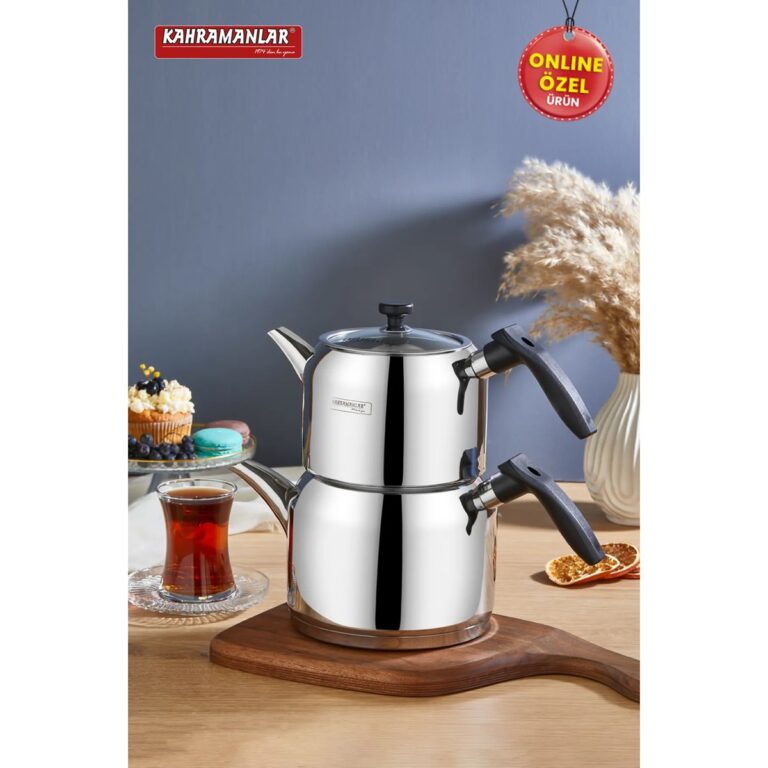 Korkmaz Steama Çaydanlık Seti – 18/10 Cr-Ni Paslanmaz Çelik, Güneş Enerjili, Enerji Tasarruflu, Ergonomik Saplı, 0.9 lt Demlik ve 1.6 lt Alt Çaydanlık
