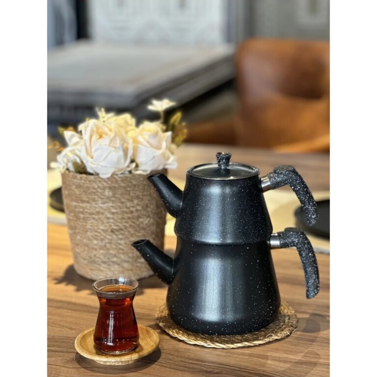 YUNUSOĞLU HOME Granit Kaplama Piramit Cam Kapaklı Çaydanlık Siyah
