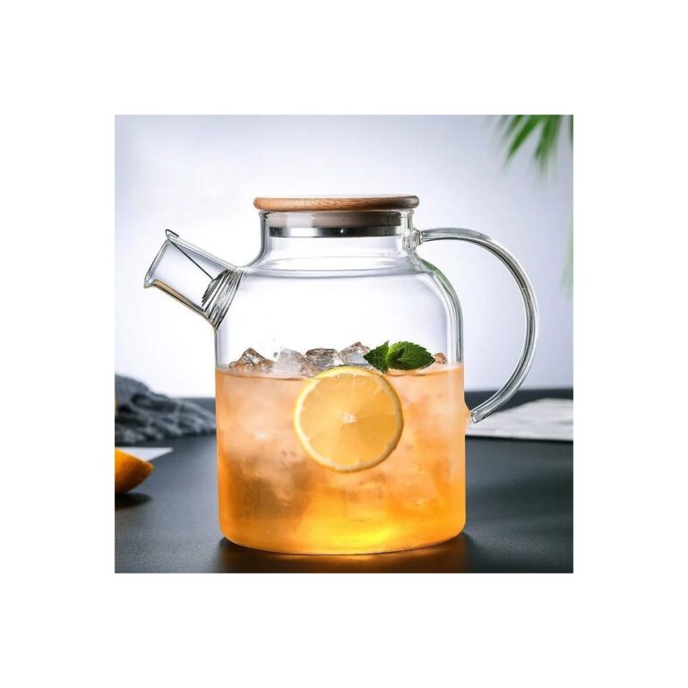 Morponi Borosilikat Cam Bambu Kapaklı Bitki Çayı Demliği & Sürahi 1500 ml
