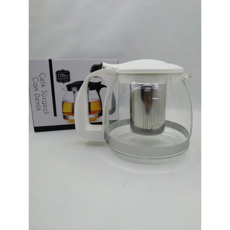 Yakut 1250 ml Çelik Süzgeçli Cam Demlik- Beyaz